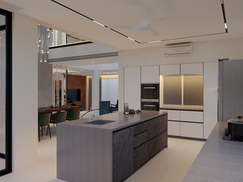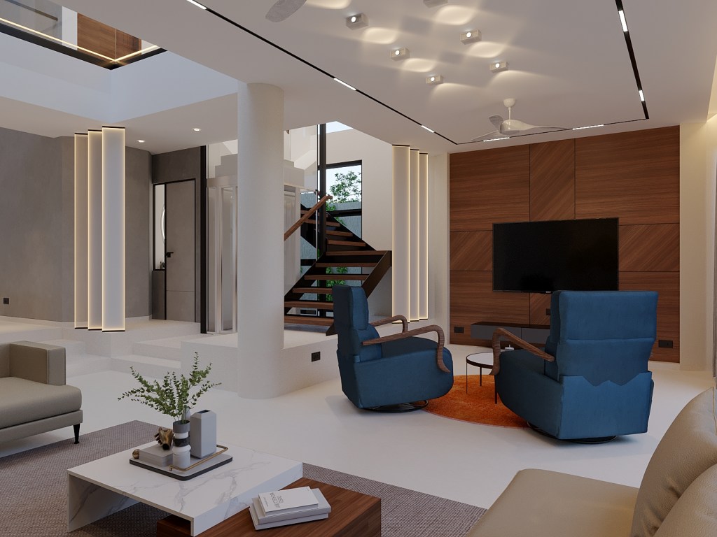 Vishram has multiple characteristics, it’s a space where all the rooms are interconnected with the line of sight. It’s got a very simple and understated and has a very small set of materials which have been used throughout the house. We have moved the exterior facade look inside the house to make it a very seamless experience. There is a lot of greenery around the house and the portico around the house is an extension of the living space and that interaction is livening up the house. Vishram is fully automated with all the modern amenities and utilities required for a comfortable living.