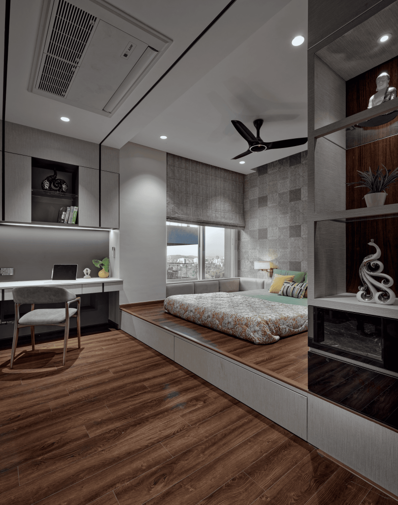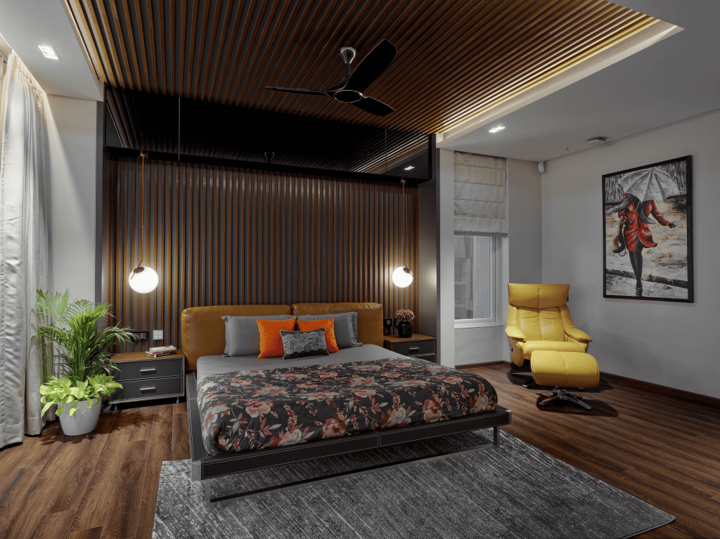 Design Concept: The concept of bringing modernity to the spaces with Indian flavours brought a stream of thoughts which revolved around keeping the design simple with straight lines, using limited materials and indulging in splashes of colours. The repetition of lines and materials in various forms and textures made each space unique, yet relatable in the context of the entire house.