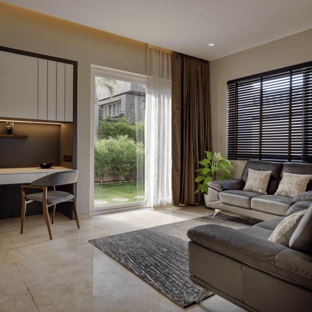 Clients’ Brief: The Clients were a dynamic couple with two children. The husband lived abroad while the wife and the children lived in Pune, especially for the children’s education. Their aspiration was to eventually settle down in Pune, away from the hustle bustle of the city, yet finding the right balance of proximity to the city and have a home with all the amenities of a modern house. Having lived abroad as a family for many years, they desired to have a contemporary house with modern designs, materials and integrated with automation and all the latest gadgets. There was also a sense of Indian-ness which was felt during our conversations, which they had missed all this while that they had lived abroad. Being a property developer himself, the Client’s unique eye for design, material selection and detail was a feather in the cap.